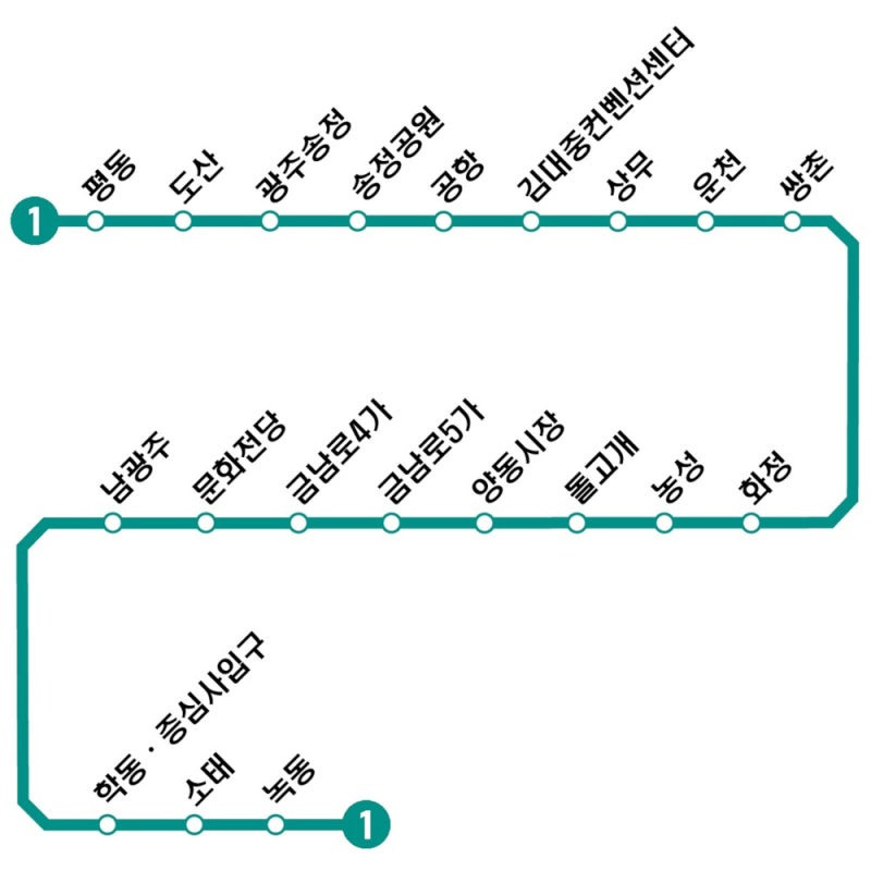 ▶ 광주광역시에서 운행하는 도시철도. 정식 명칭은 광주 도시철도. 낮 시간대에 10분 간격으로 광주 도시철도 1호선이 운행 중입니다.