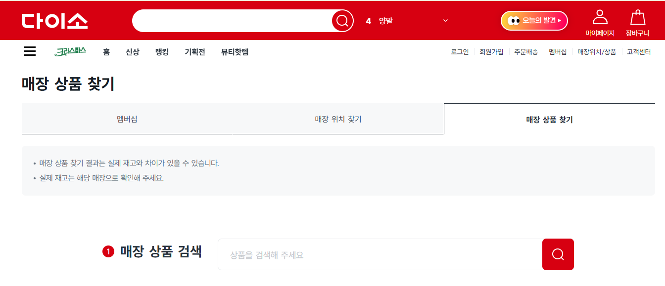 특정 매장에서 다이소 재고조회 방법