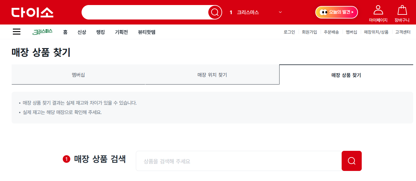 다이소의 앱이나 홈페이지에서 제공되는 재고 정보는 실제 매장의 재고와 차이가 있을 수 있습니다. 인기 제품은 빠르게 소진될 수 있으니 최종 확인은 매장에 문의하세요! - 매장별로 품목이 다를 수 있음