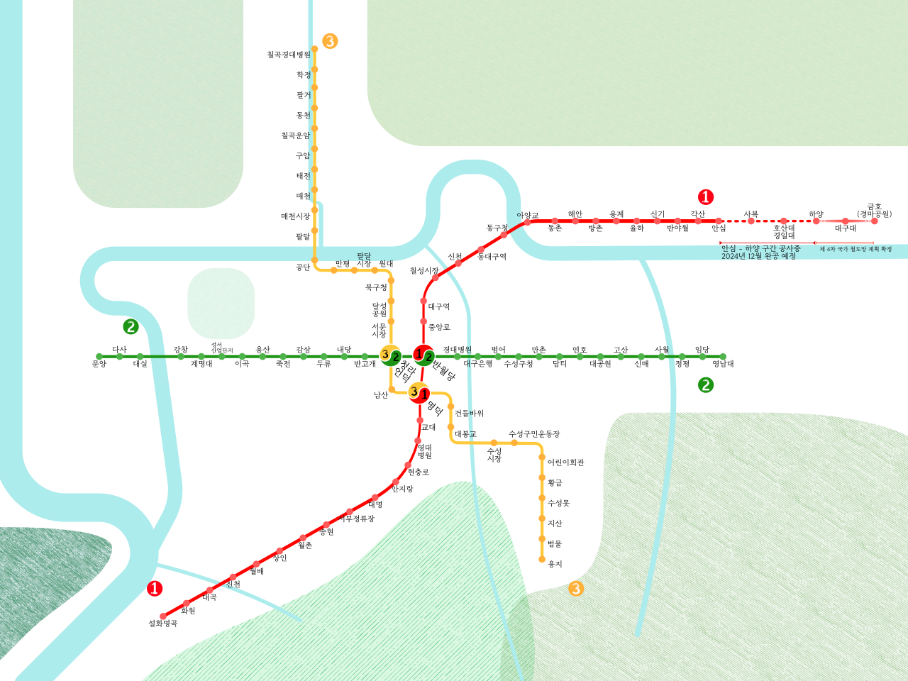 1. 대구 지하철 노선도 (1~3 호선 & 대경선)