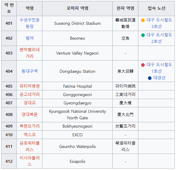 | 명덕(2.28민주운동기념회관) | 5:36 | 23:18 | 23:29 | 23:41 | 2 | 5:49 | 23:40 | 23:53 |