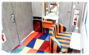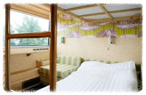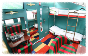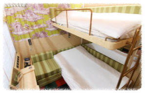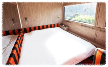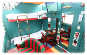 1층 싱글베드(75*185) 2개, 2층 싱글베드(75*185) 2개, 벽면 TV, 화장대, 2인용 소파, 카드키도어, (화장실과 샤워실은 각 호차에 설비된 공용시설 이용)