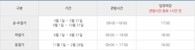 관람시간 및 매표시간