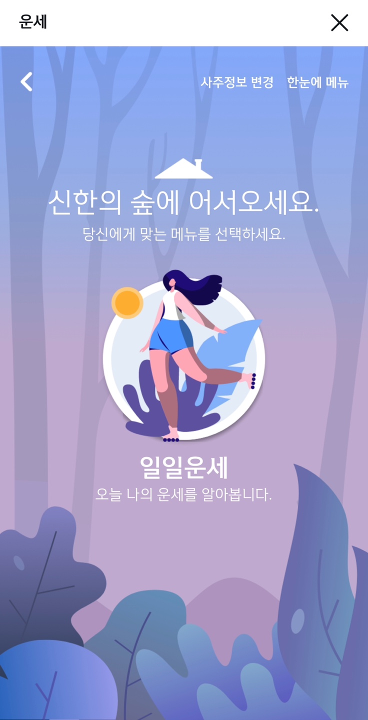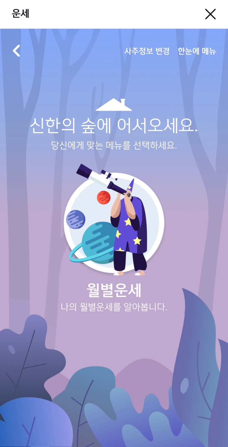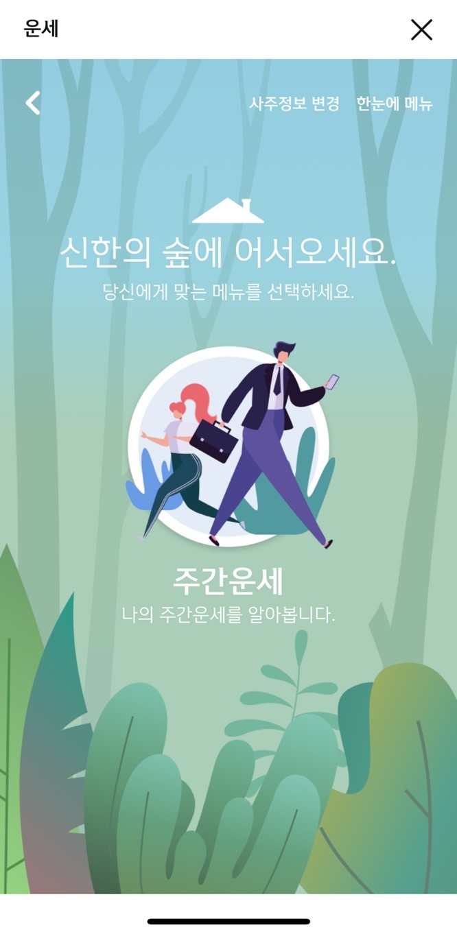 ① 신한SOL 어플 실행 후 [운세] 클릭 혹은 메뉴 검색 창에 [운세] 검색