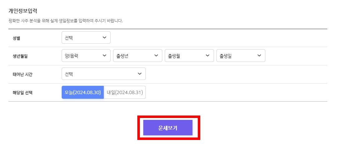 ② 개인정보입력 후 [운세보기] 클릭