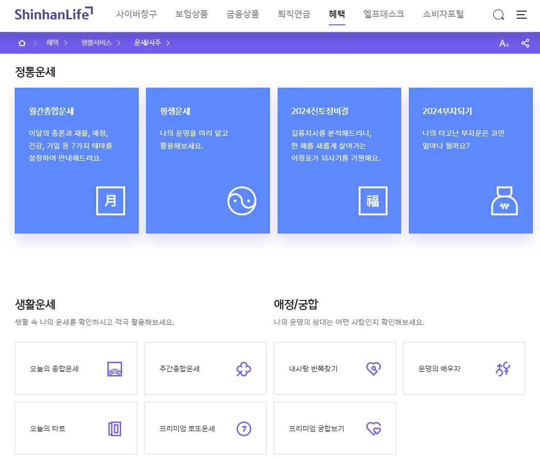 신한생명 무료운세 : 모바일/홈페이지