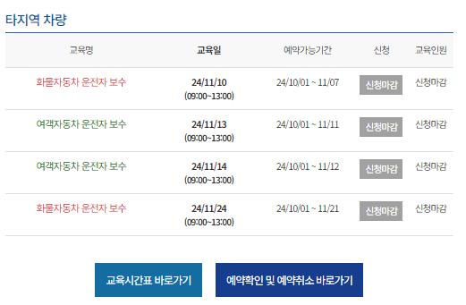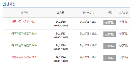 아래에서 빠르게 인천시 화물운송종사자 보수교육 신청하세요.