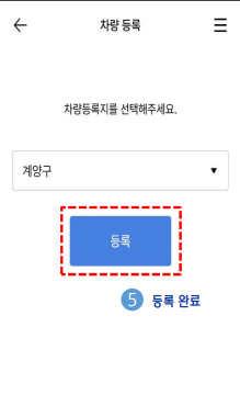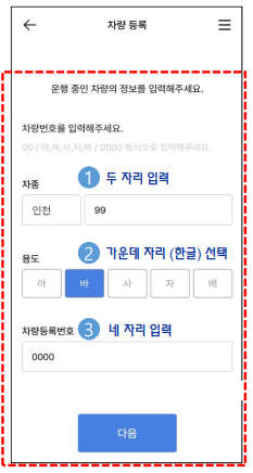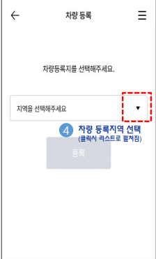 4. 차량번호를 입력하고 등록지를 선택합니다.