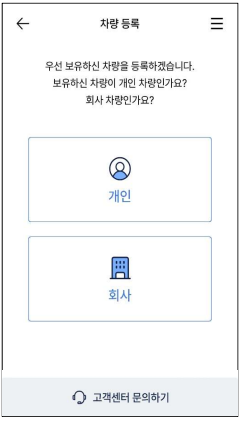 2. 개인/ 회사와 업종, 차종을 선택합니다.