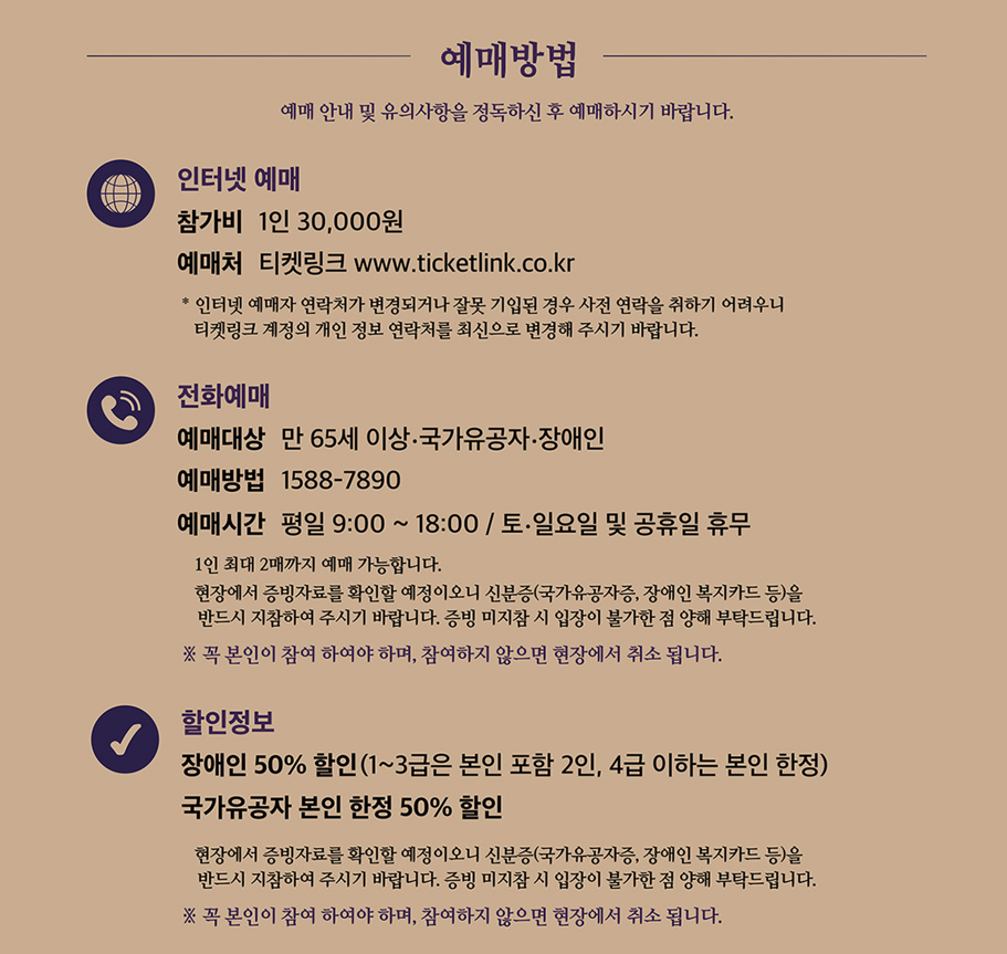 국가유공자는 본인에 한해 할인이 적용됩니다. 한정된 인원만이 참가할 수 있는 만큼,