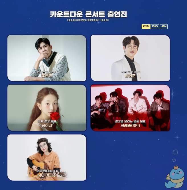 인기가수 축하공연 - 23:55 ~ 24:00(5')