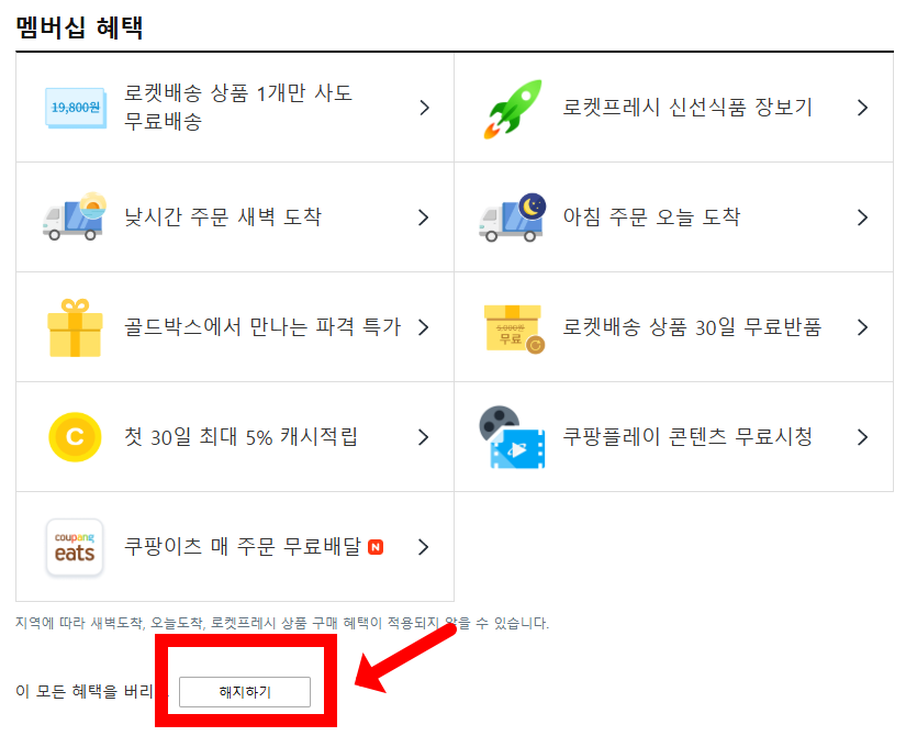 ※ 여기에서 기존 쿠팡 멤버십을 이용하지 않았다면 환불로 진행이 되고 쿠팡 멤버십을 이용했다면 해당 월까지는 사용이 가능합니다.