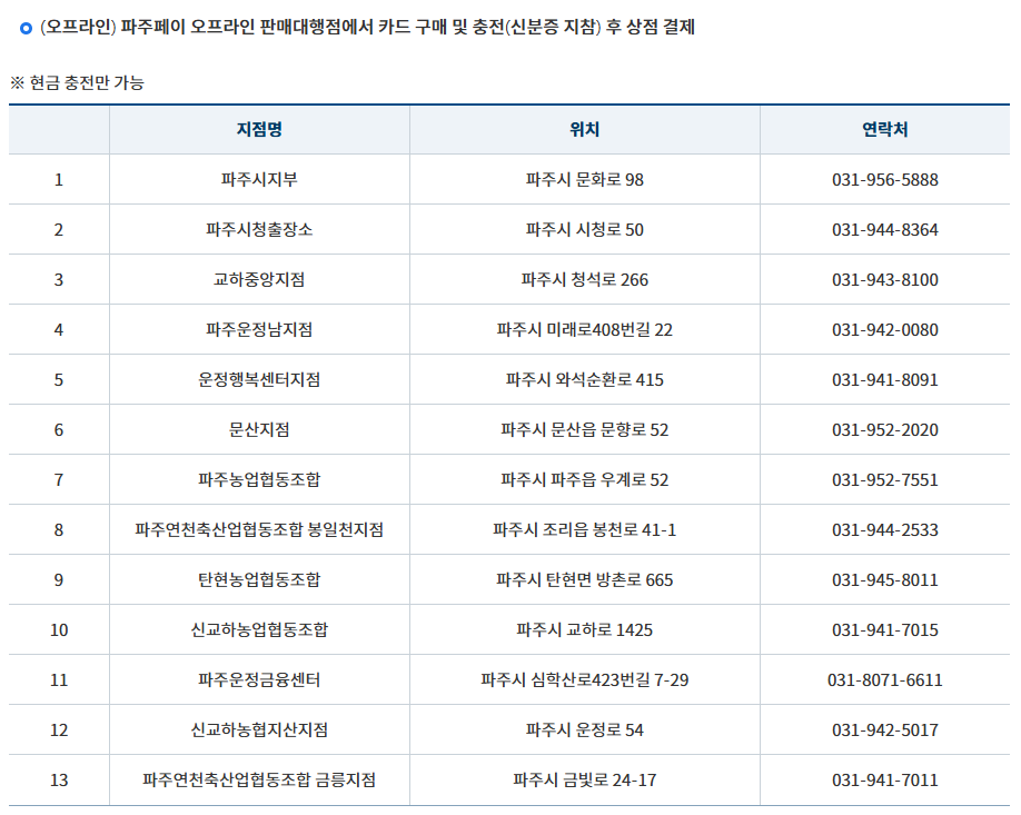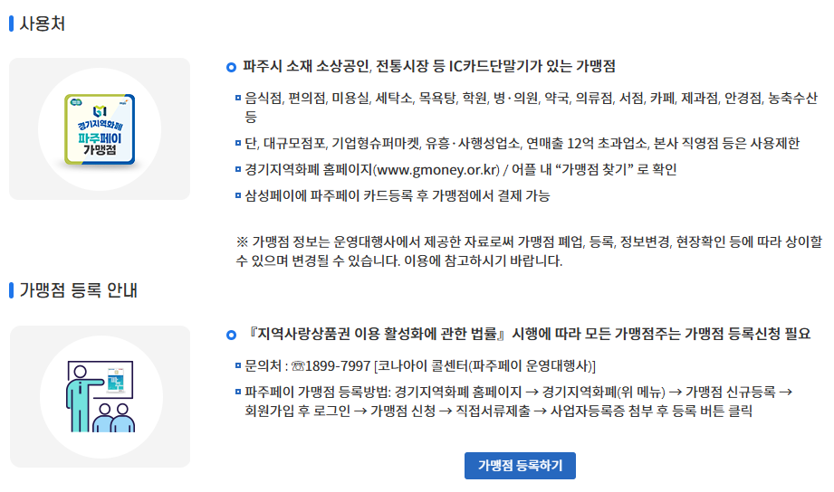 - 파주 지역의 전통시장에서 결제가 가능합니다.